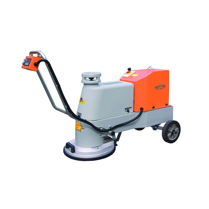 Grinder/Polisher for marble soft stones, granite and concrete; usable both with abrasives and with diamond tools. Plastic water tank and base frame in aluminum. The only one equipped with an electric leveler fitted in the center of the machine to align the back wheels. Clockwise and counterclockwise motor revolution with variable speed on display.