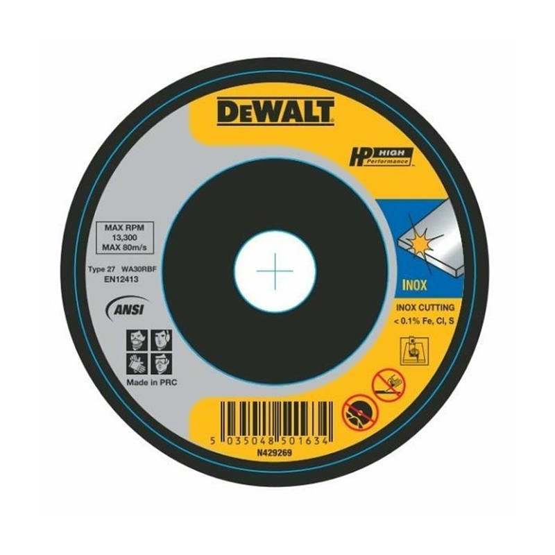 DEWALT cutting wheel design for fast burr free cutting, proprietary aluminum oxide grain combination for aggressive cutting action, proprietary material mix ensures durable long life wheels, 2 full sheets of fiberglass for durability & safety, fast burr free cutting.