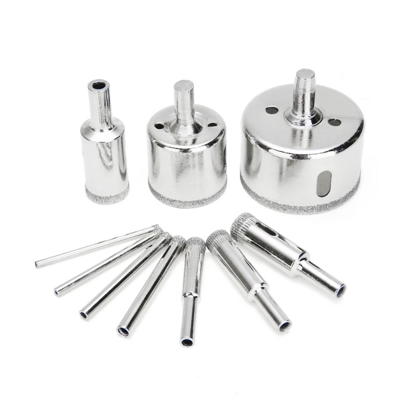 The diamond coated drill bit removes a complete circle from glass, tiles, marble, granite, ceramic, etc.