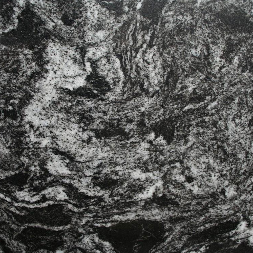 Silver Paradiso Granite is a dark grey to black gneiss of the Precambrian period with many white veins and decoration together with dark patches. This stone internationally may be nominated as a granite but in the area of application of the European Standard this stone must be nominated as a gneiss. Suitable for construction projects both commercial and domestic, prefabricated countertops/worktops, vanities, tiles, backsplashes, paving, fireplaces and memorials.